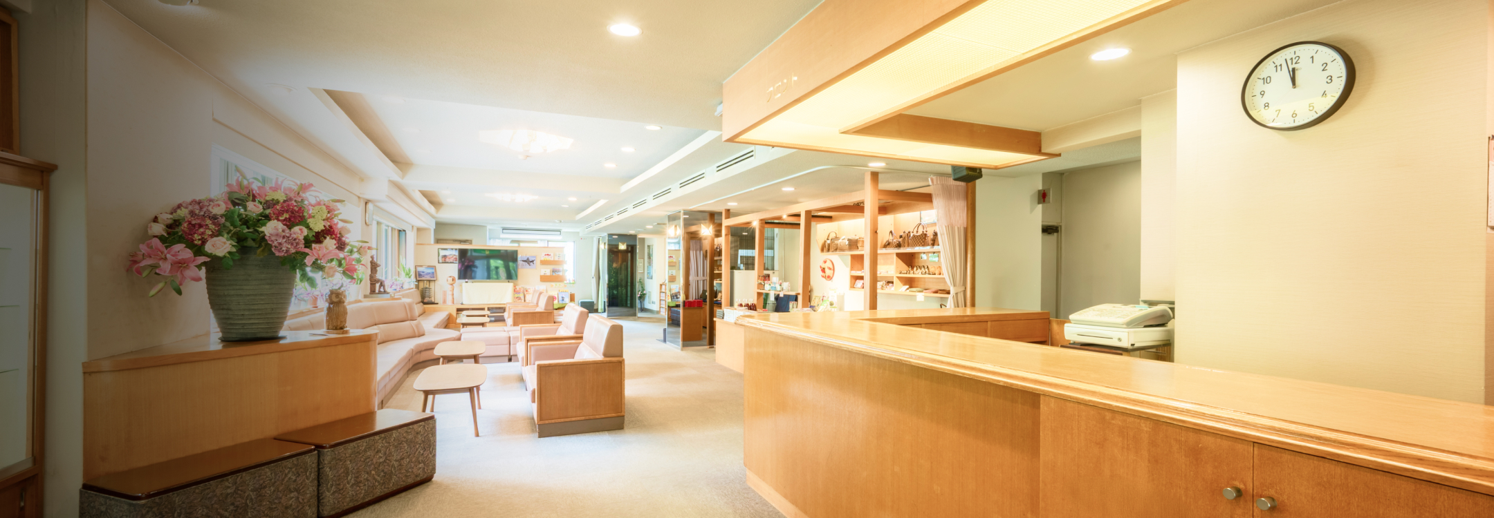お客様をお出迎えする当ホテルのフロントです。さまざまなご要望にお応え致しますので、お申し付け下さいませ。